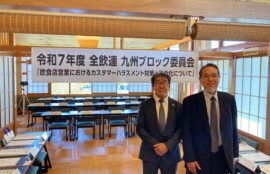 7日は千徳酒蔵の見学、㈱一平ホールディングスの村岡浩司氏の講演会、夜は宮崎県組合員と合同で懇親会を